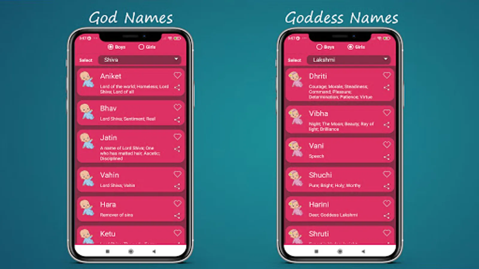 In this app there are 30,000 plus Hindu Boy Names and Hindu Girl Names are available