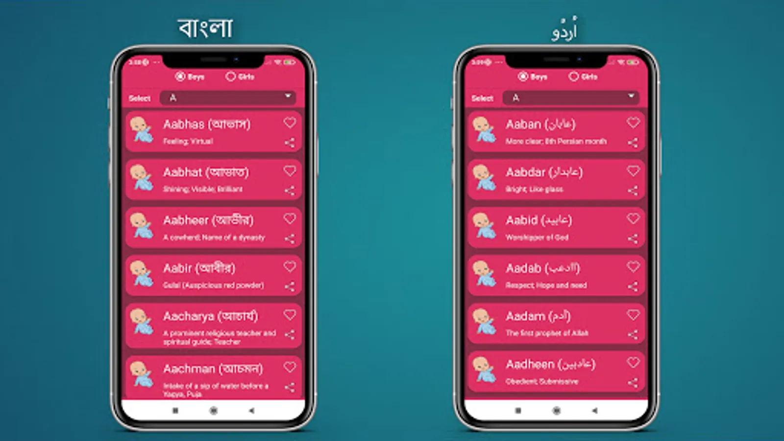 Hindu Baby Names and Islamic Baby Names are available in this app with alphabet sorting.
