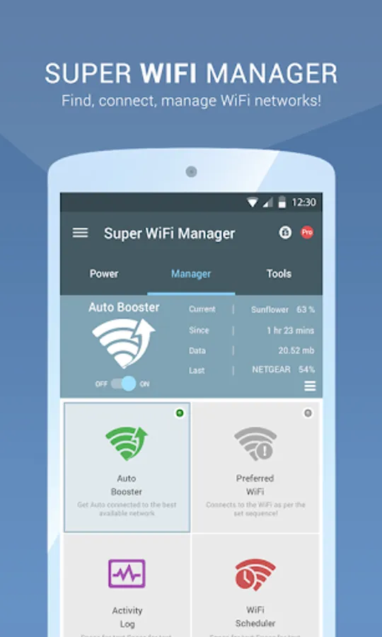 Super WiFi Manager is a professional WiFi tool for you to analyze your networks and help you to connect to the best available signals! If you are looking for the Best WiFi Optimizer, Manager, & Analyzer then this network tool must be your first choice!