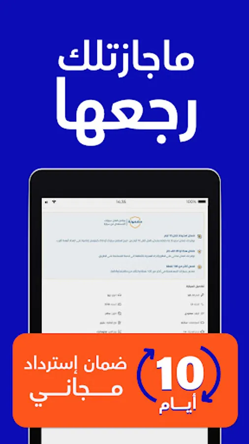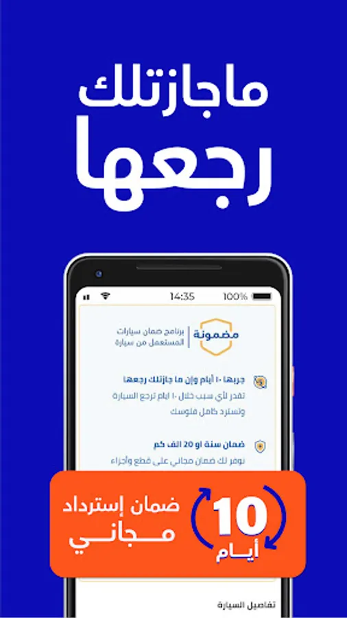 نقدم لك 10 أيام تجرب فيها السيارة وإن ما جازتلك تقدر لأي سبب ترجعها وتسترد كامل فلوسك مباشرة!