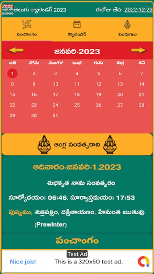 Telugu Calendar & Panchangam 2023 app is the very first app that provides both calendar image view and date wise panchangam like day to day panchangam for years 2017 to 2024.