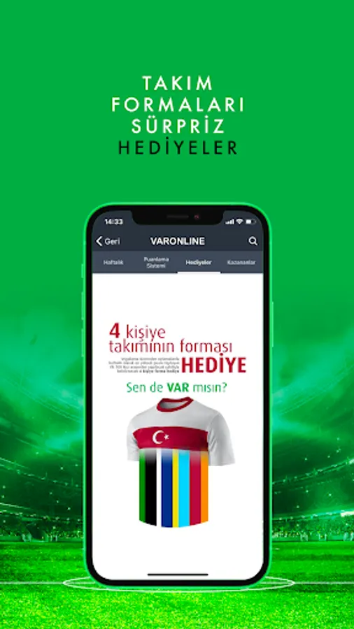 After creating your profile, you can earn points after performing certain activities in the app. If you are among the top 100 people who reach the weekly highest score, you will be eligible to participate in the lottery. As a result of the draw, the jersey of the team that he hires 4 people every week is a gift!
