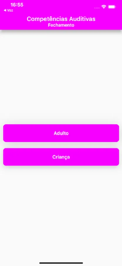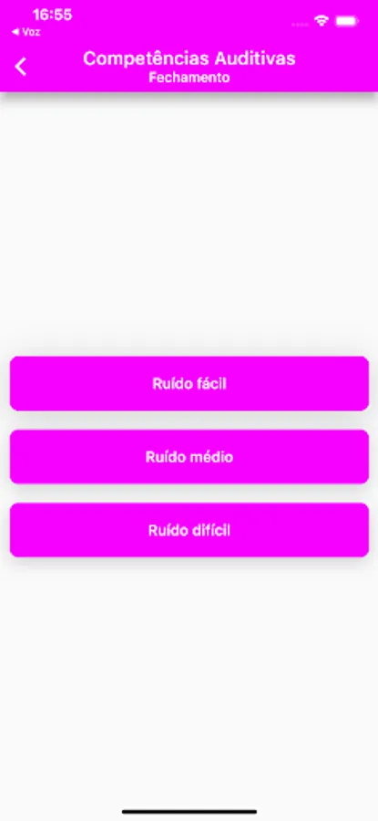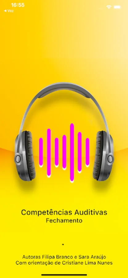 The Closing 1 - Hearing Skills application is an APP that contains 15 tracks with adult voice, with white noise, divided into 3 levels of difficulty (easy, medium, difficult); plus 24 tracks with a child's voice, with school noise, equally divided into 3 levels of difficulty (easy, medium, hard). The exercises were conceived and created by speech therapists Filipa Branco and Sara Araújo, under the guidance of Professor Cristiane Lima Nunes, with the aim of developing Central Auditory Processing, more specifically the auditory closing competence.