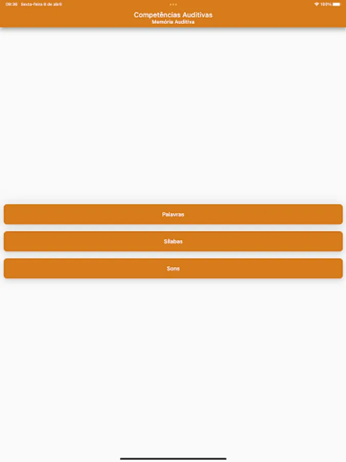 The Memory - Auditory Competencies 2 application is an APP that complements the Memory 1 APP, containing 34 exercises that are divided into: 5 auditory memory tracks of non-verbal sounds; 14 auditory word memory tracks and 15 syllable auditory memory tracks. This APP was carried out by speech therapists Filipa Branco and Sara Araújo, under the guidance of Professor Cristiane Lima Nunes, with the aim of developing Central Auditory Processing, more specifically the auditory memory competence for verbal and non-verbal sounds.