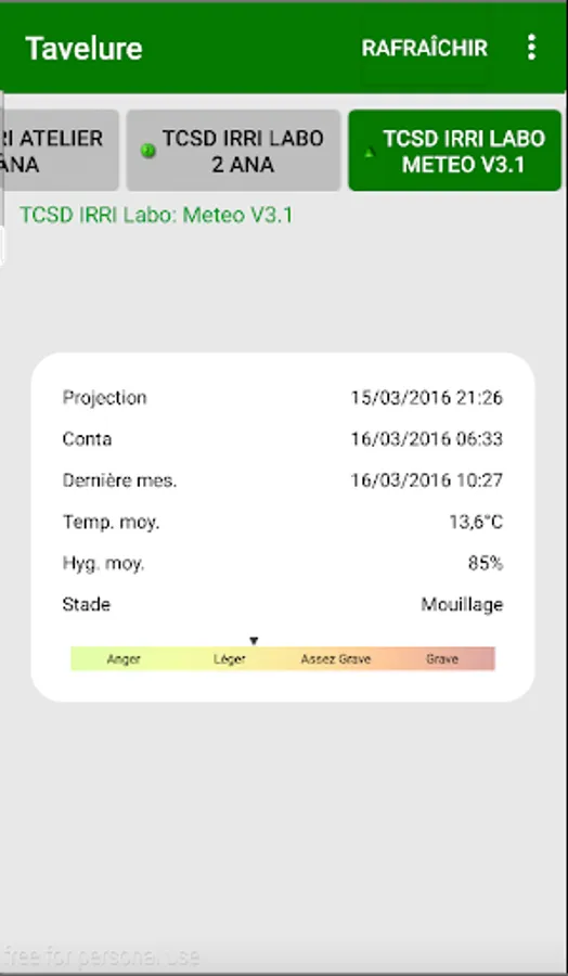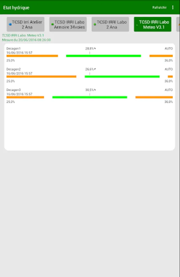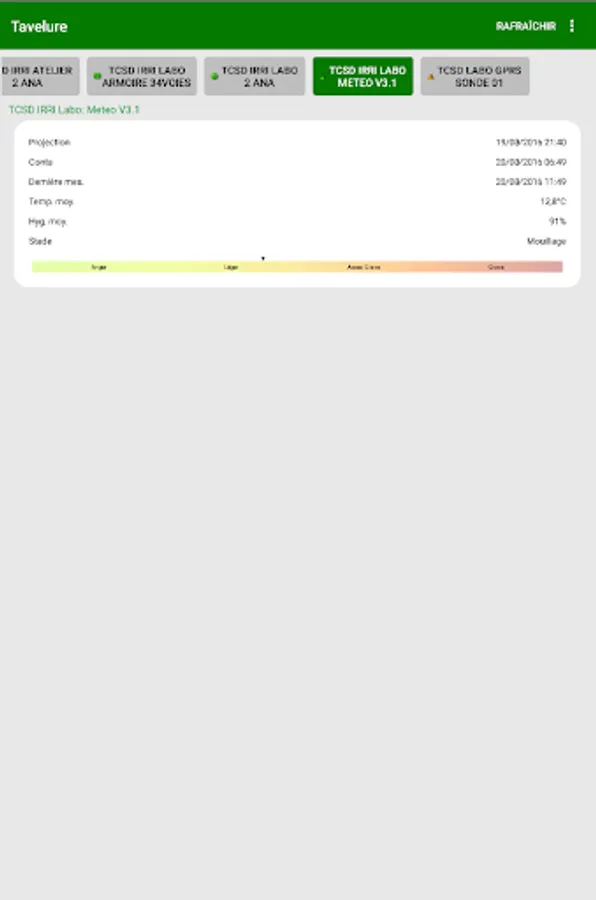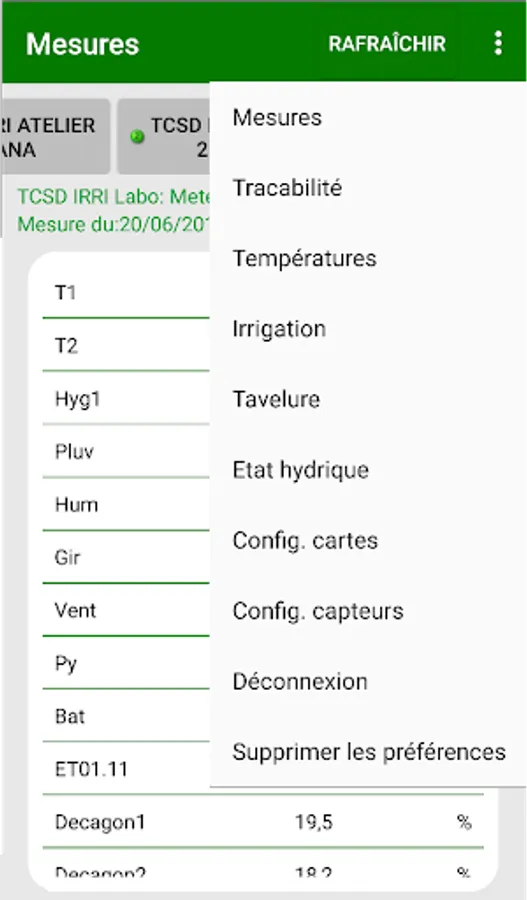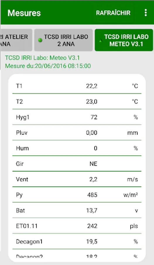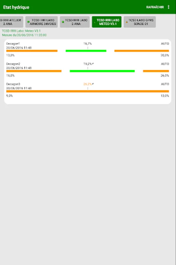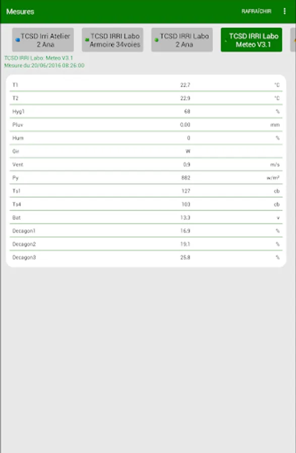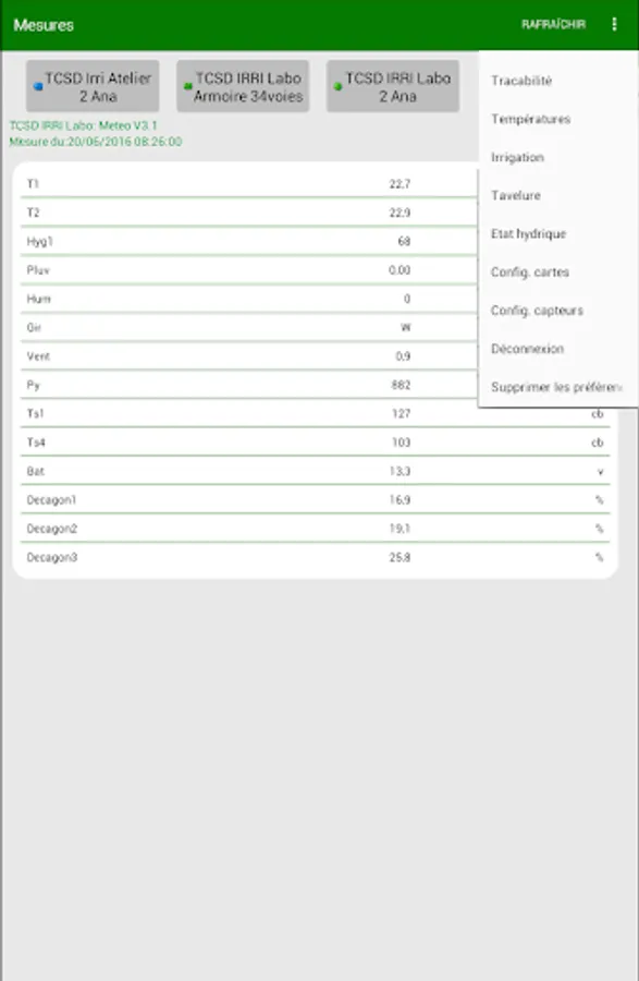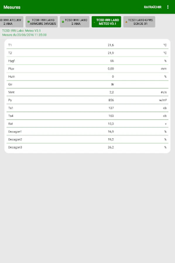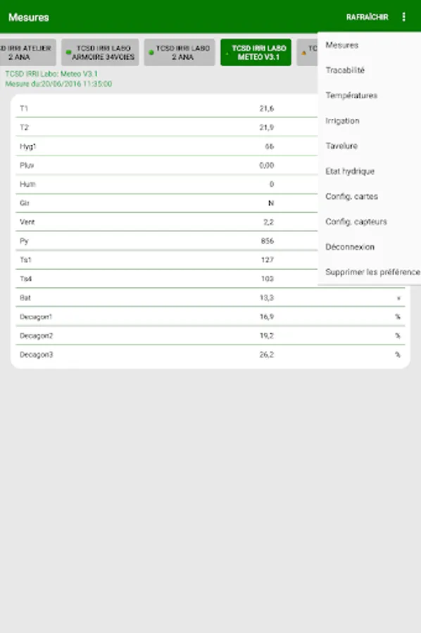 Application for owners of systems monitoring and management of agricultural parcels Comsag allowing real-time visualization of various measures and traceability tools