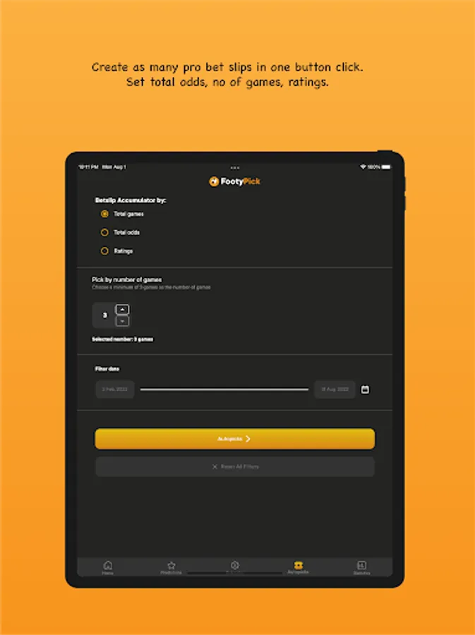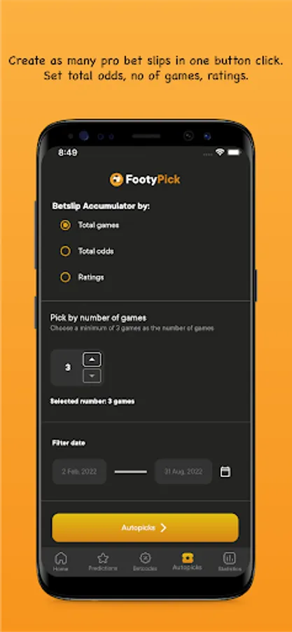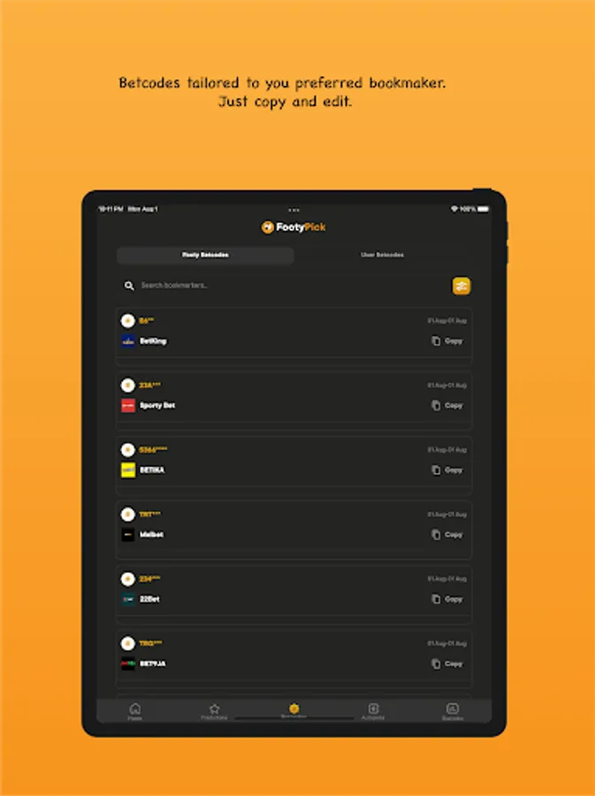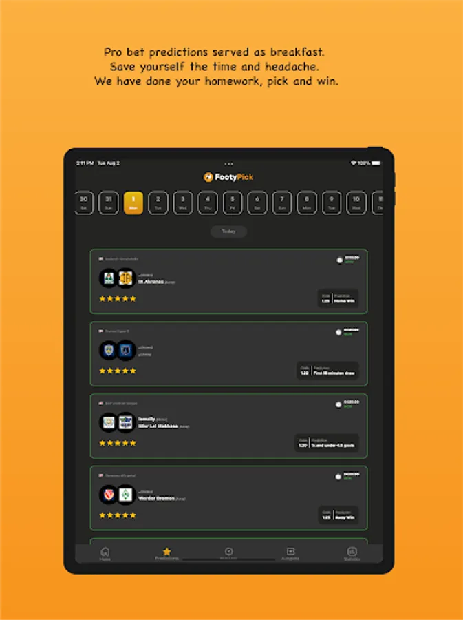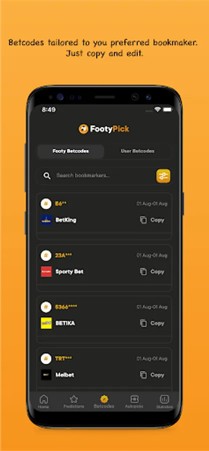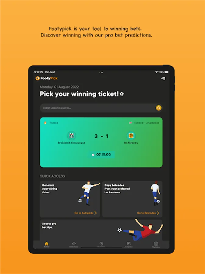Footypick eliminates the long hours spent on bet forecasting with our Autopicks tool and bet code generator for different bookies.