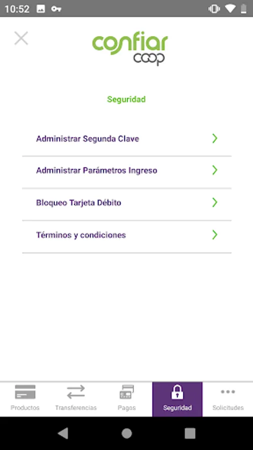 Through our app you can consult information about our agencies, communicate with us and perform product simulations. If you already have our products, you can check all your information, make your payments, transfers between Trust and other banks accounts and bill payments for public services, mobile telephony and more.