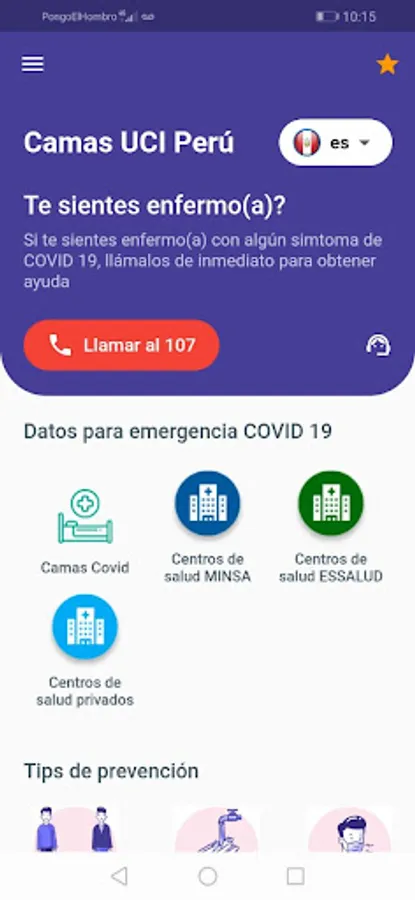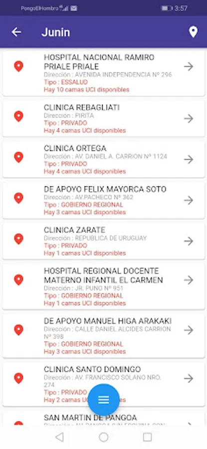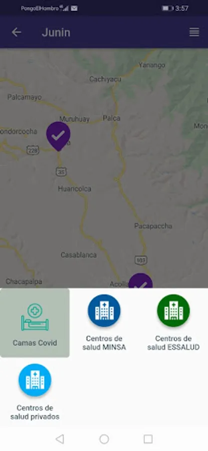 The Application in its first version will allow to show available beds in ICUs of health service providers such as MINSA, ESSALUD and various types of centers, which are identified and georeferenced.
