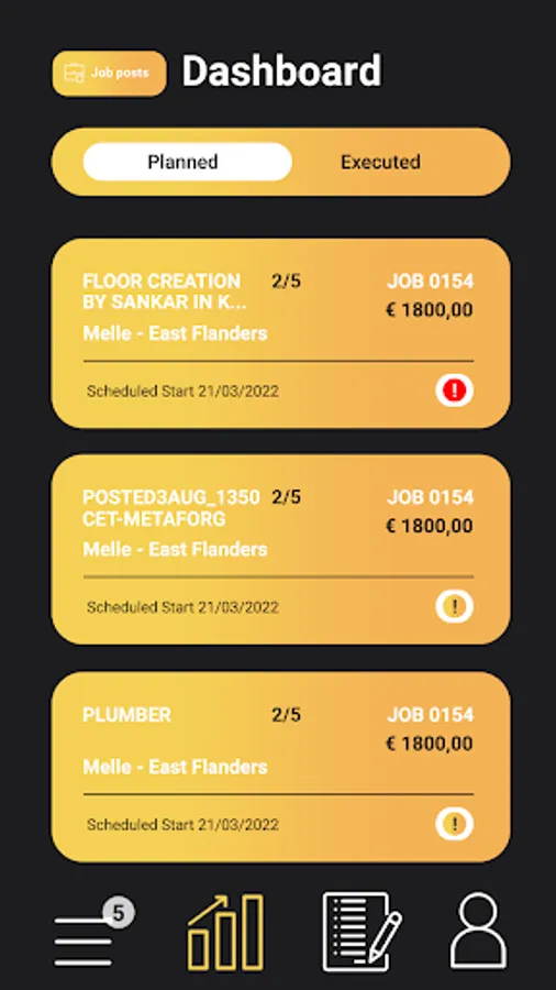 Or you are a starting professional in the construction business with no contacts. Find assignments that match your availability and your skills. Browse through jobs in your neighbourhood, accept the jobs and you are ready to start. Accept, plan, deliver and get paid. Rate your peer business and increase your visibility.