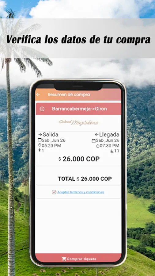 Discover new places, visit your family and friends, take a well-deserved vacation. You only have to Buy Your Tickets in our App, it is not necessary to queue or go to the terminal to buy your ticket, you can pay with credit cards, debit card, PSE, allied points in cash such as Efecty, Baloto, Exito, Carulla , Sutimax, Super Inter, Gana Gana and many more in any branch nationwide.
