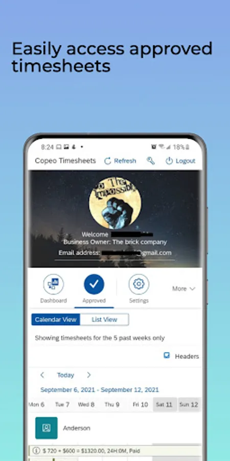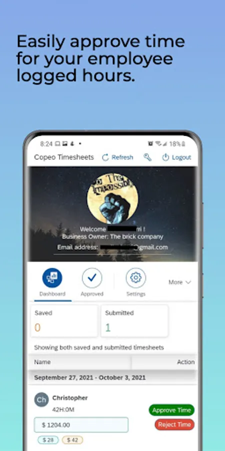 All your employees can easily capture and submit their time. The app automatically calculates the total hours for day and for week. The app calculates the total pay(regular, overtime) based on the hours submitted by your employee and making it effortless on the calculations part for you.