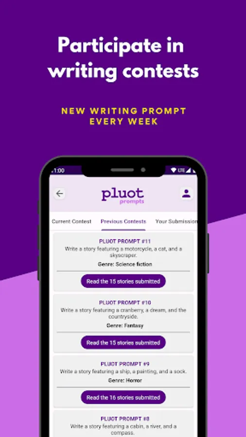 • Weekly writing challenge to flex your creative writing muscles. Submit your stories and receive feedback and upvotes from other users!