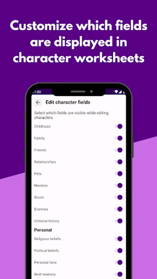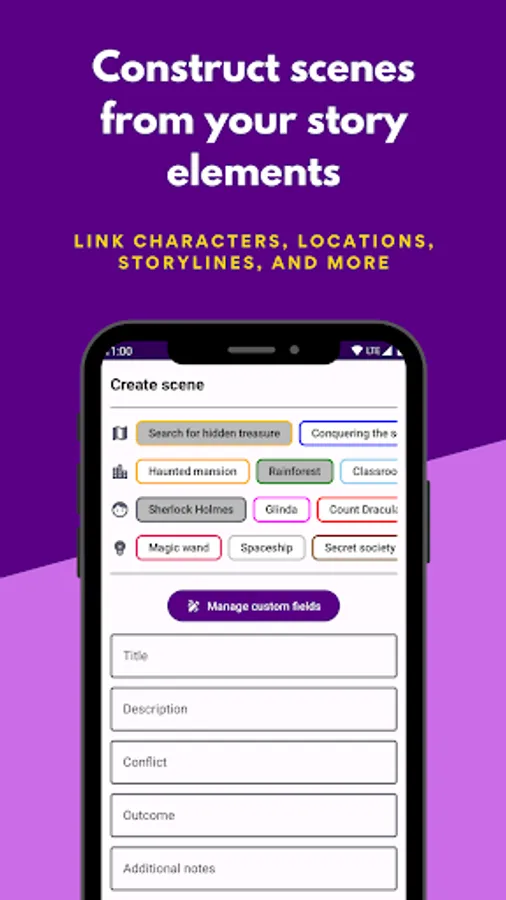 • Create custom character fields, and custom edit fields for scenes, locations, and storylines*