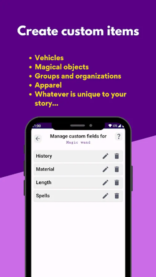 • Create custom items for whatever your story requires. Magical objects, organizations, vehicles, the limit is your imagination...*