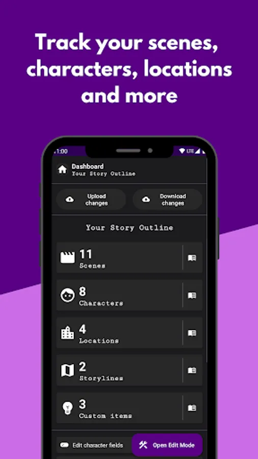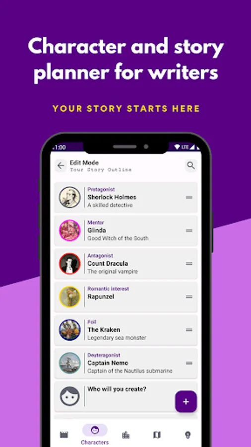 • Specifically designed for writers, including novelists, playwrights, and screenwriters, to plan books, novels, graphic novels, comic books, screenplays, plays, fan fiction and all your stories!