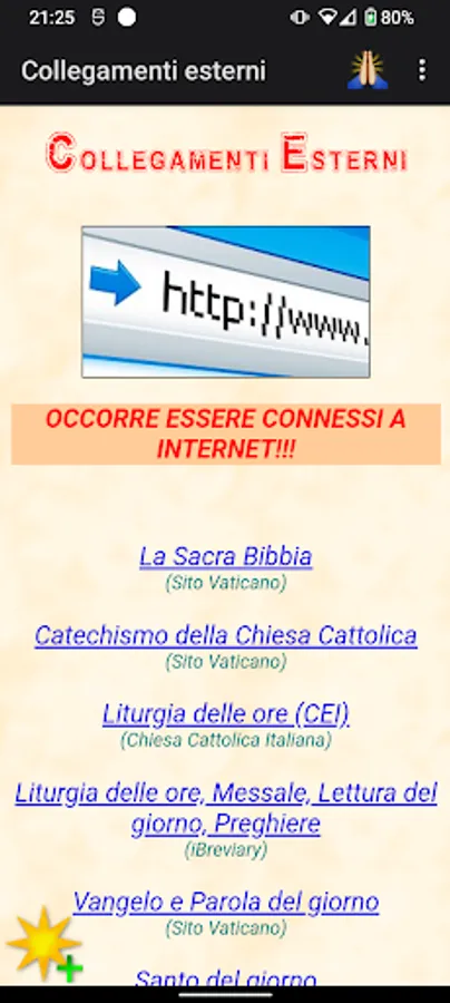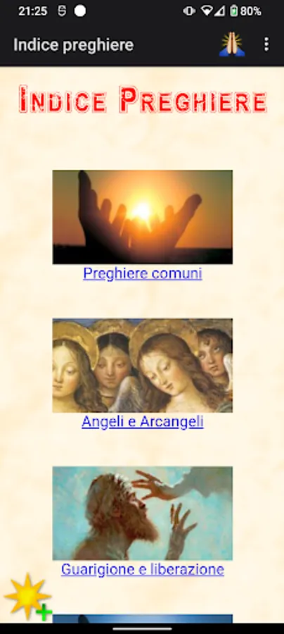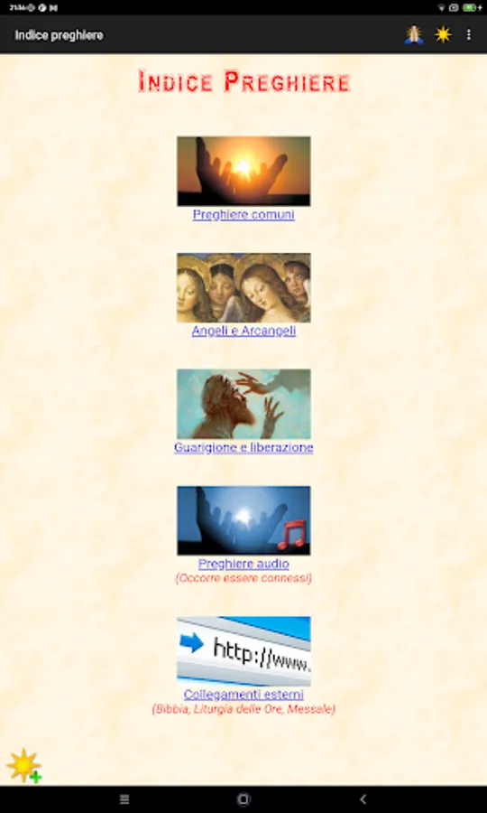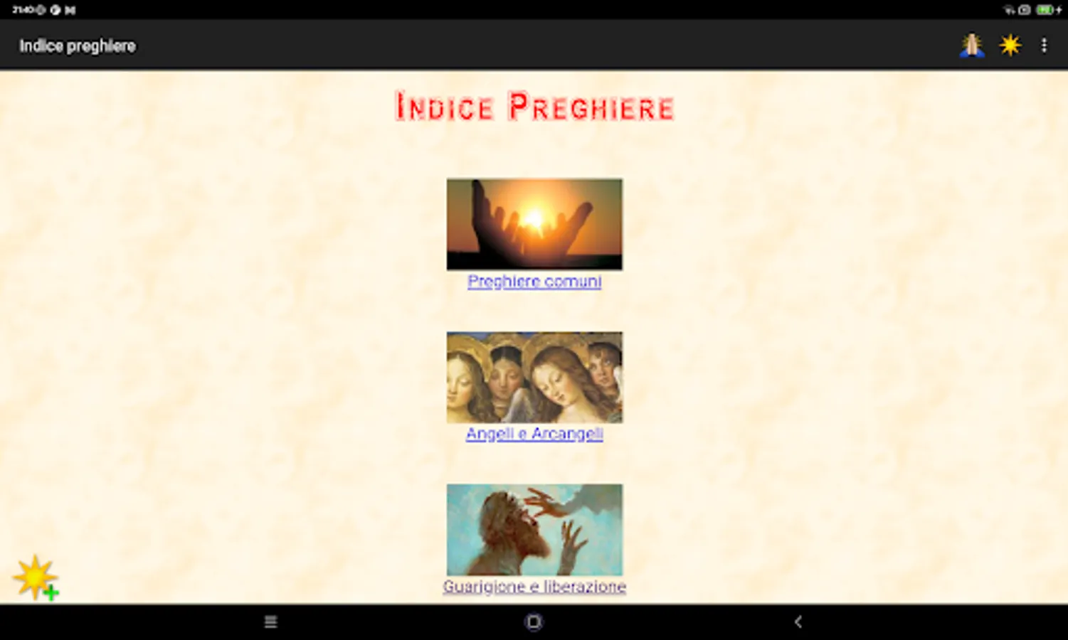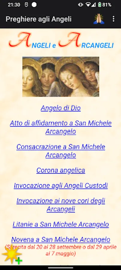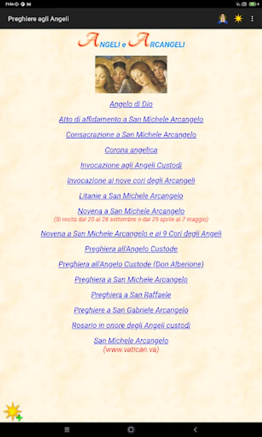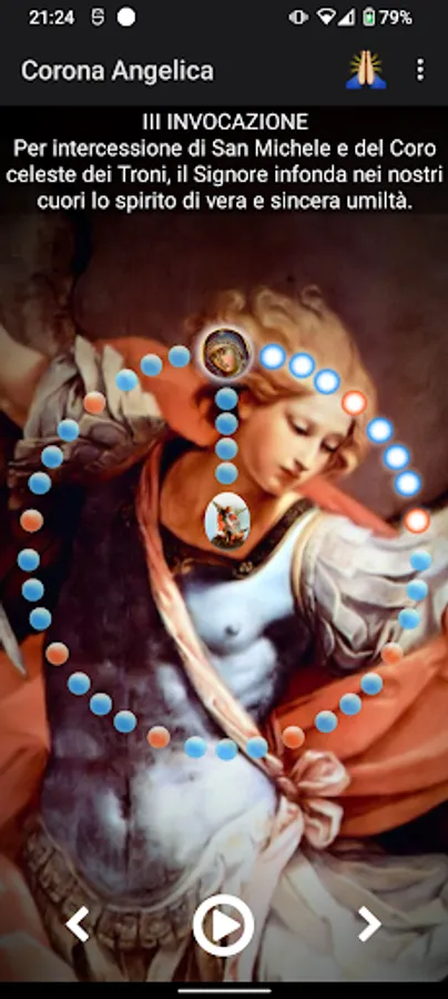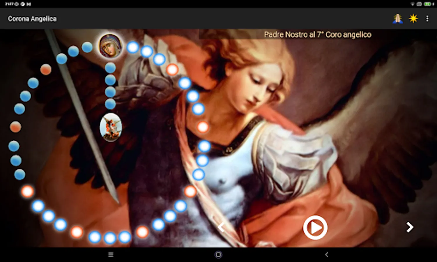 This application re-proposes the classic Corona Angelica in electronic version, with the possibility to listen to it and recite it also in Audio version.