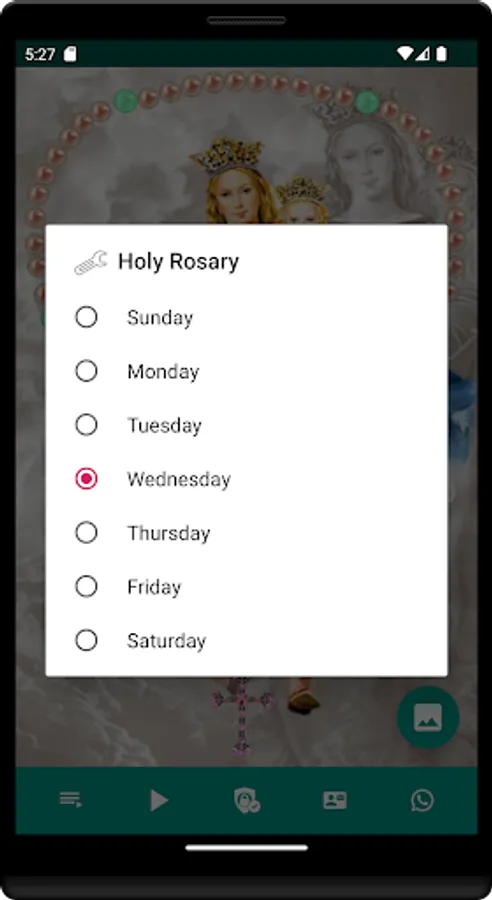 Mysteries are automatically recited in the Rosary according to the day of the week indicated on your cell phone;