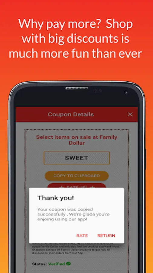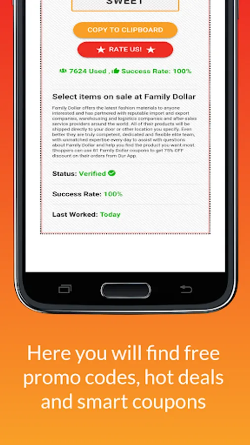 Coupons for family dollar is an independent application which is not related to any other apps or companies. All rights remain their respective owners. This app only gathers all available smart Coupons for family dollar for more convenience of users only.