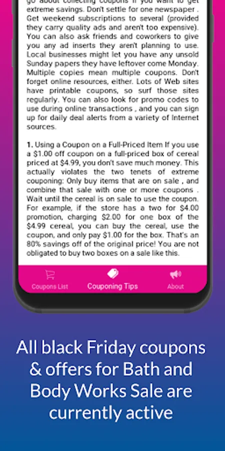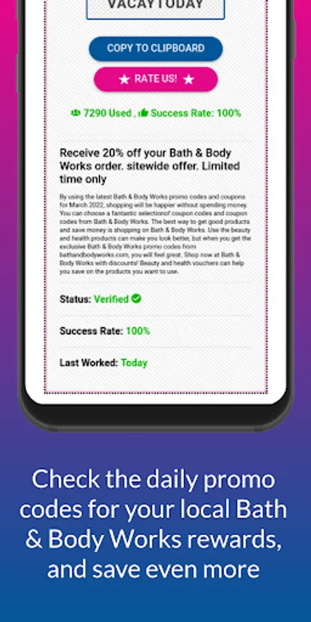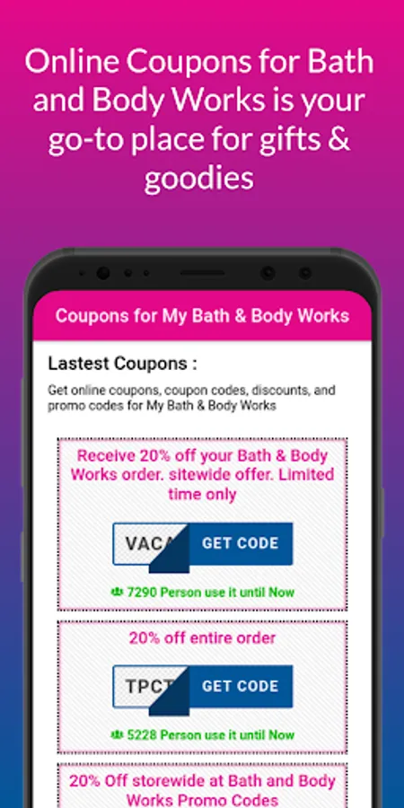 This My Bath & Body Works Coupon code discount app lets you find good coupons and hot deals in black Friday, xmas, noel, new year and all others important shopping dates