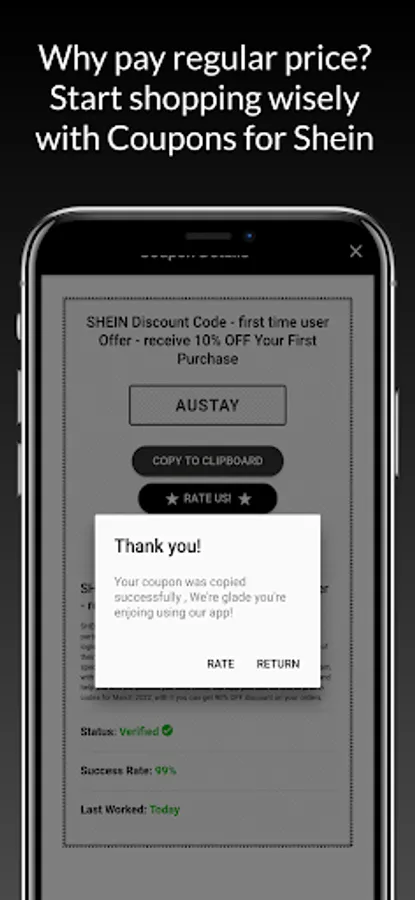 * Now your discounted price will appear. Our app will continue providing new promo codes from SHEIN to all app users.