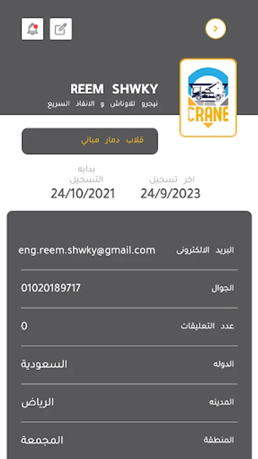 Crane for cranes is an electronic application (mobile application) that specializes in providing transportation services and assistance services on the road and highways and within the governorates, and the application works to facilitate the trouble of searching for assistance, transportation and rescue services for vehicles on the roads within the Kingdom of Saudi Arabia