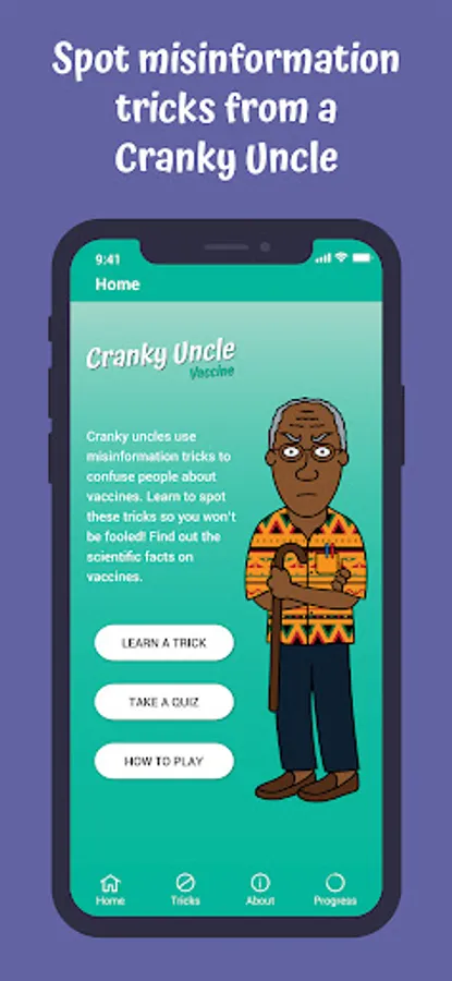 We all have a cranky uncle who thinks he knows better than the world’s scientists. But how do you make sense of his arguments and conspiracy theories? The way to understand your cranky uncle is to become a cranky uncle! If you’re going to spot someone cheating at cards, first you have to learn how to cheat at cards. In this game, Cranky Uncle teaches you the misleading tricks he uses to cast doubt on vaccination. The deeper you get into the game, the more resilient you become against vaccine misinformation. The Cranky Uncle Vaccine app is a collaboration of UNICEF, Sabin Vaccine Institute, Monash University, and the Vaccination Demand Observatory, a collaboration of UNICEF, Yale Institute for Global Health, and Public Good Projects.