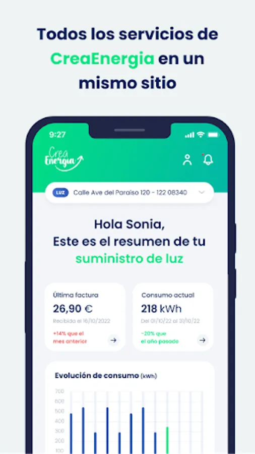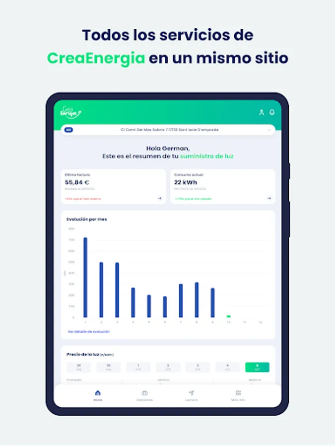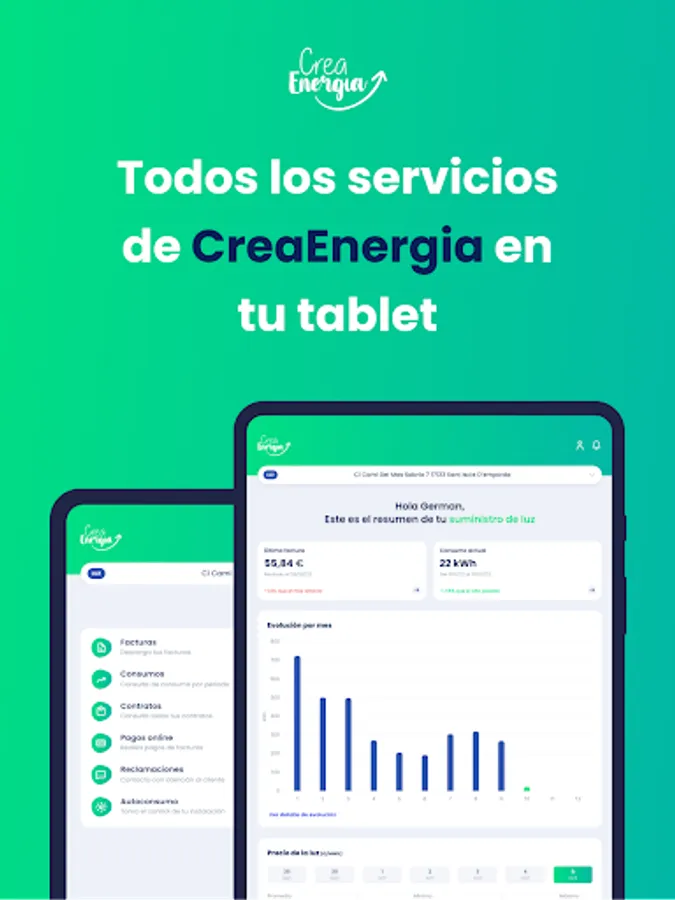 Our main objective remains the same, that you pay as little as possible. For this reason, with the new CreaEnergia customer app we want to make it even easier for you. With it, you will control your consumption at all times so that you do not overpay on your electricity and gas bill.