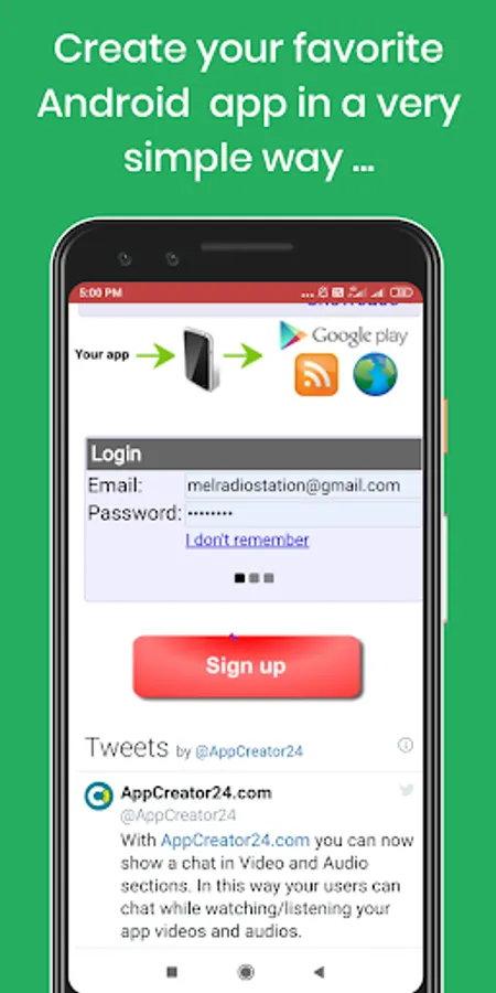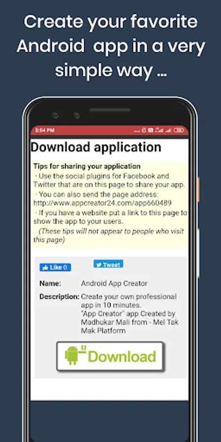 Create your favorite Android app and make it live on Play Store. And see how happy you are. Let's create a professional Android App of your choice, but only on mobile. Wouldn't it be great if you could create an app like this and make it live on the Play Store? So let's download "Android App Creator" App today and create your own favorite Android App. from - Ⓜ Mel Tak Mak Platform