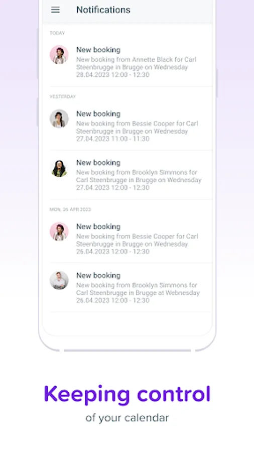 Get instantly notified about online bookings made by the client and accept them from within the mobile app.