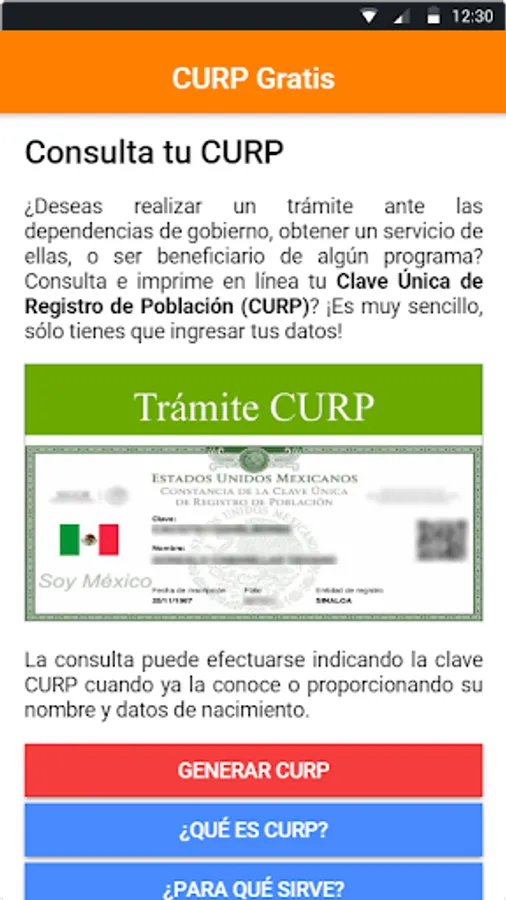 Unofficial application for the Curp Consultation Tramit for free Mexico.