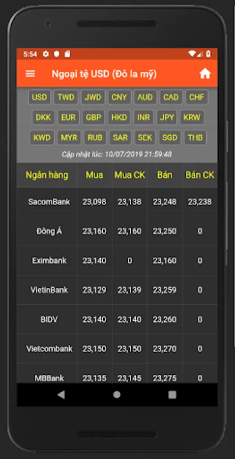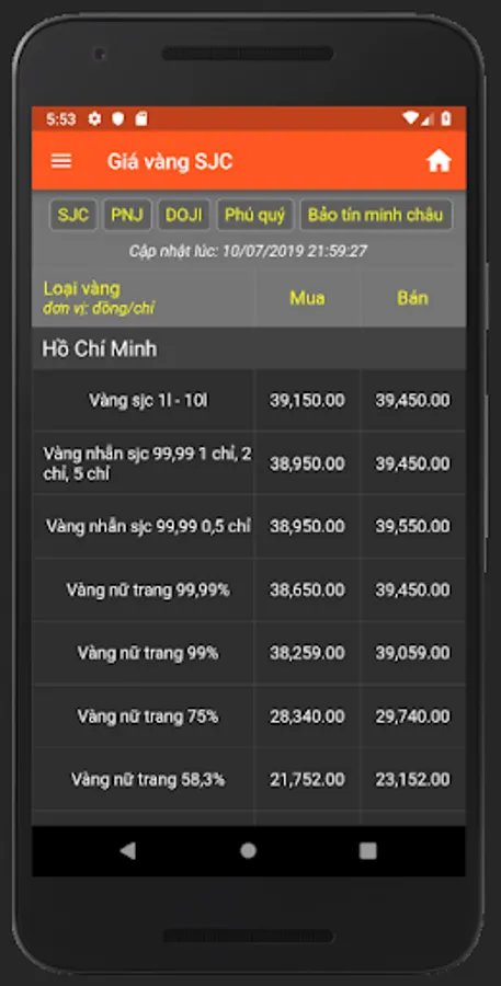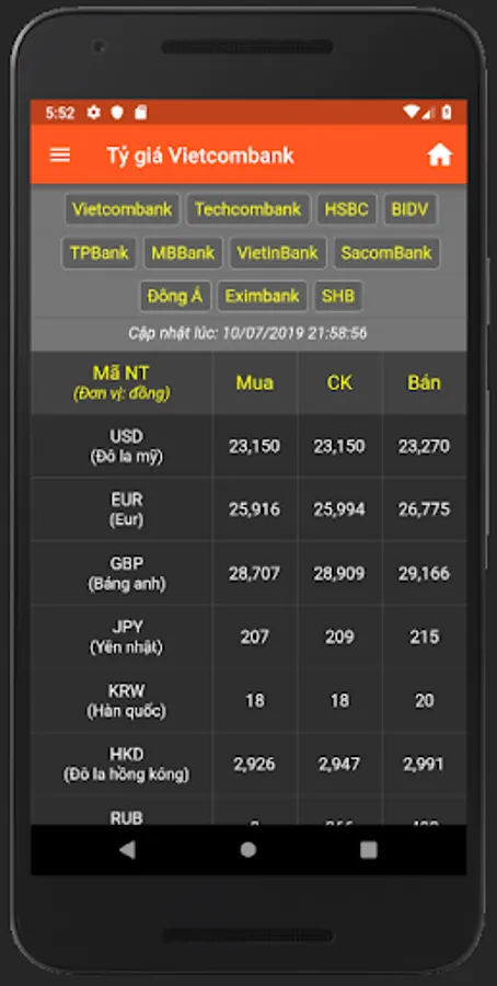 Data is updated continuously every 3 minutes / time directly from the bank's homepage (Vietcombank, Viettinbank, HSBC, OceanBank, SJC ..)