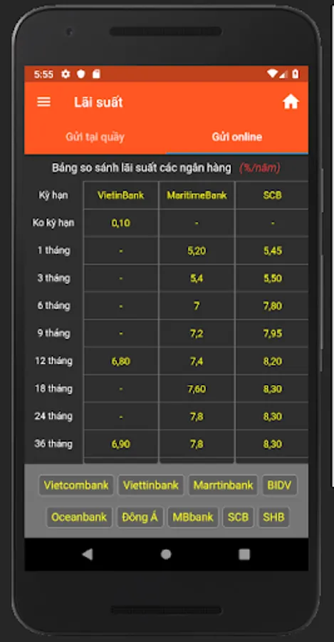 + View interest rates between banks (bring you an overview, compare interest rates among banks)