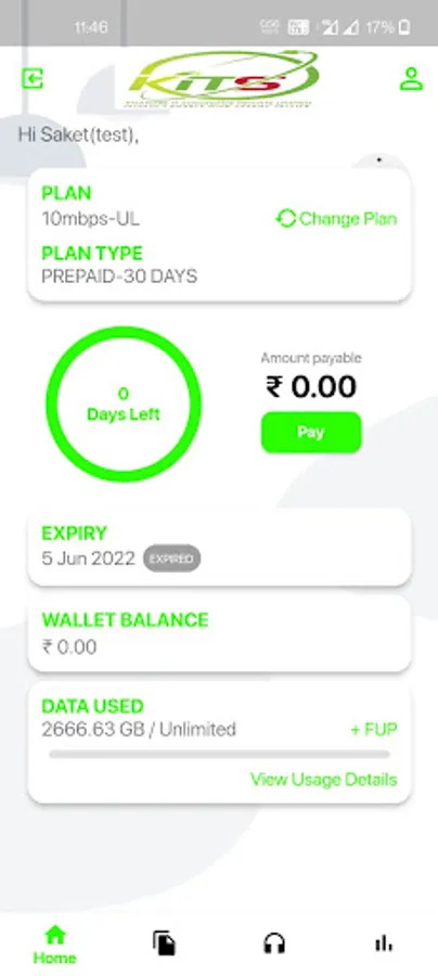 Customer portal for BOLT WIFI customers for viewing usage, bills and recharging