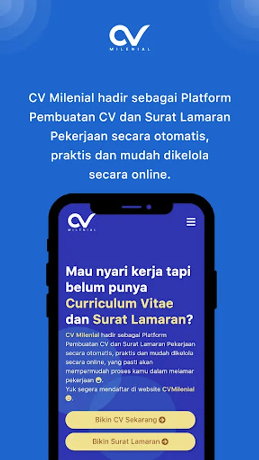 Millennial CV is here as a CV and Job Application Letter Creation Platform that is automatic, practical and easy to manage online, which will definitely simplify your process of applying for jobs. Let's join immediately on the CVMilenial website.