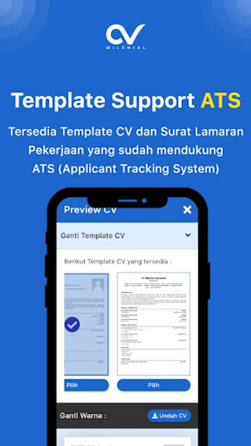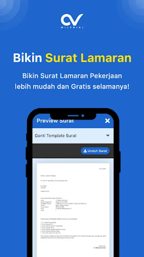 Millennial CV provides a wide selection of attractive CV templates and Job Application Letters with various designs and colors that will make your CV / Cover Letter more attractive and will make it easier for you to get the attention of the company's HRD so that your chances of getting a job are greater.