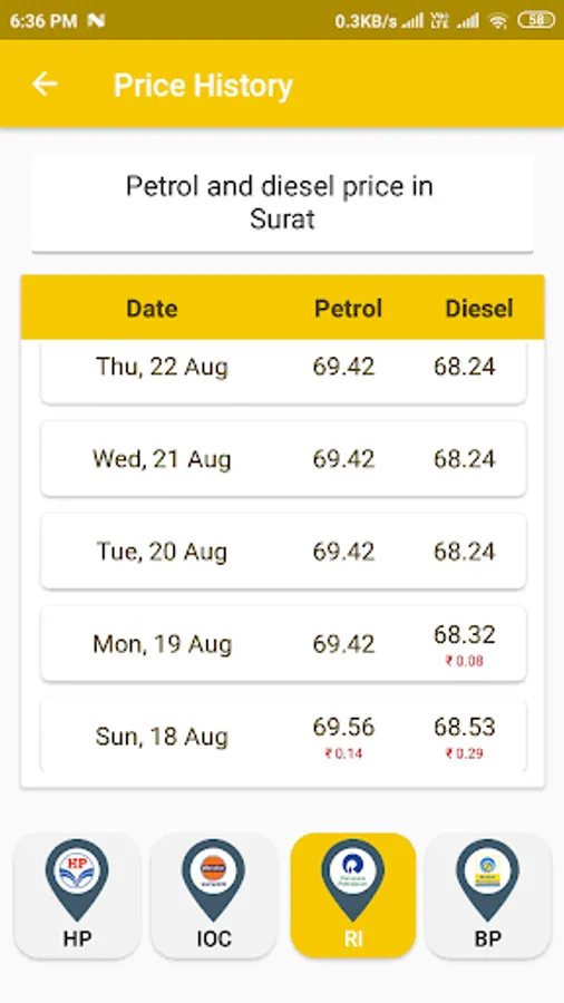 Using Petrol Diesel Price Application you can track how fuel prices have varied in comparison with the day before. You can also view the trends in fuel price.