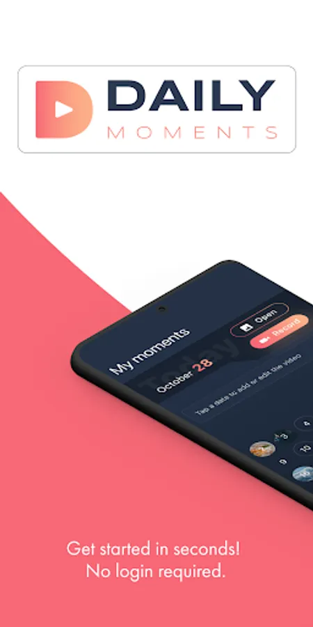 Get started in seconds! No registration required. Daily Moments is free, fast and intuitive: it just works! Easily record clips or pick from your camera roll. Then tap Make Movie and the app will take care of the rest.
