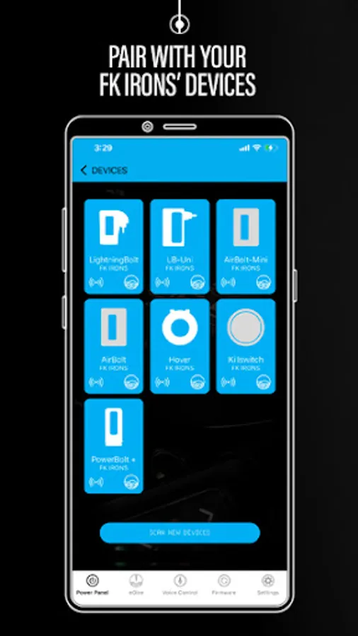 Tattoo artists can scan, pair and control a Darklab tattoo device, which is intended to be used with the application with the Hover Tattoo Power Supply the LightningBolt Tattoo Battery Pack, LightningBolt UNI Tattoo Battery Pack, Flux Max Tattoo Machine, etc. The main function and objective of the application involves the on/off button, voltage adjustment, eGive, the signal level of the devices, and the firmware update of these devices. Features include renaming and removing a device. In addition, in the firmware screen, the current version of the device is displayed and there will be a notification when there is a new update. The application saves information regarding Darklab Tattoo Devices updates (successful updates or failures).