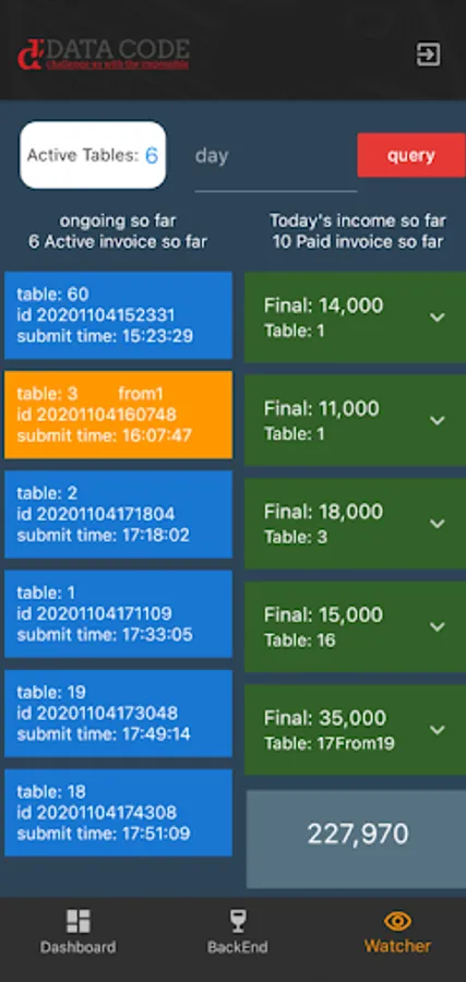 Datacode RMS can see real-time orders, invoices, and statistics for their restaurant or cafe.