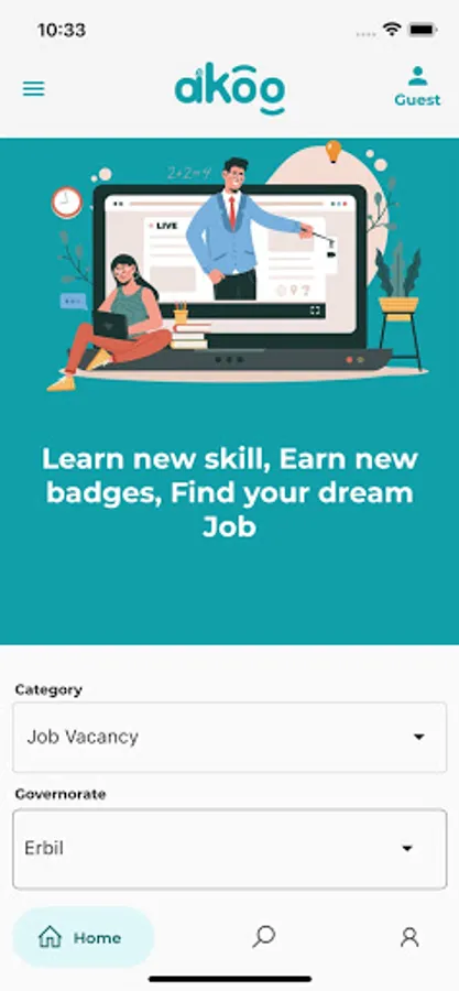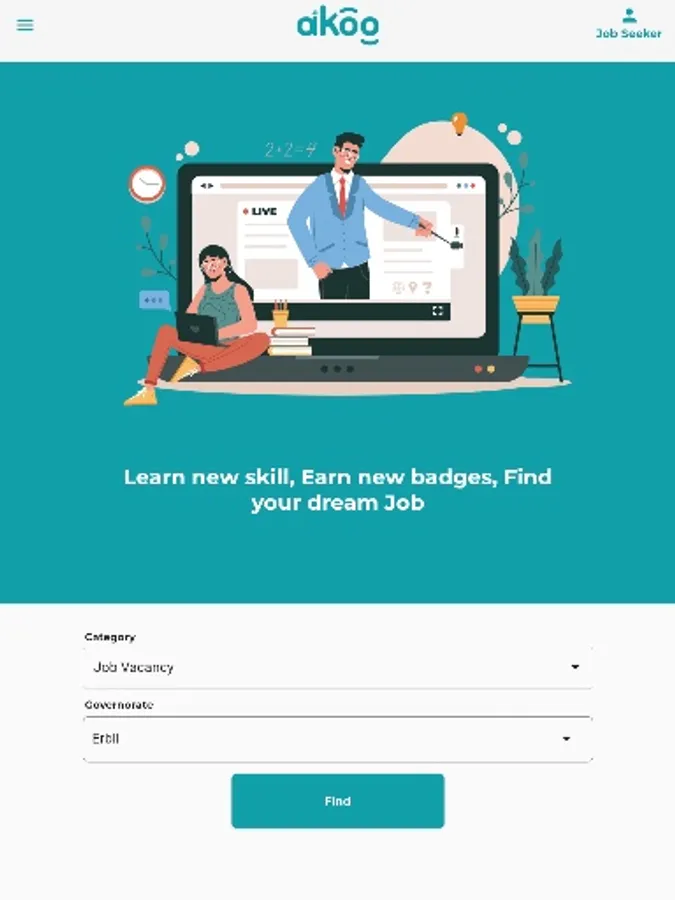 Akoo is a mobile application and a website with a search engine for job listings, internship, grant and volunteer opportunities across Iraq. The application continues to grow its online trainings to develop skills and capacities of job seekers and employees in both Iraqi Arabic and Kurdish.