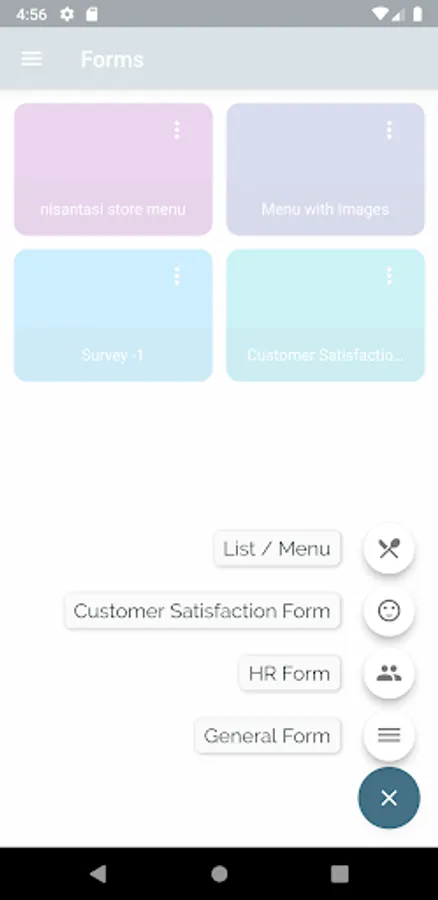 Create forms, lists & menus on mobile application, share with a link or QR code.