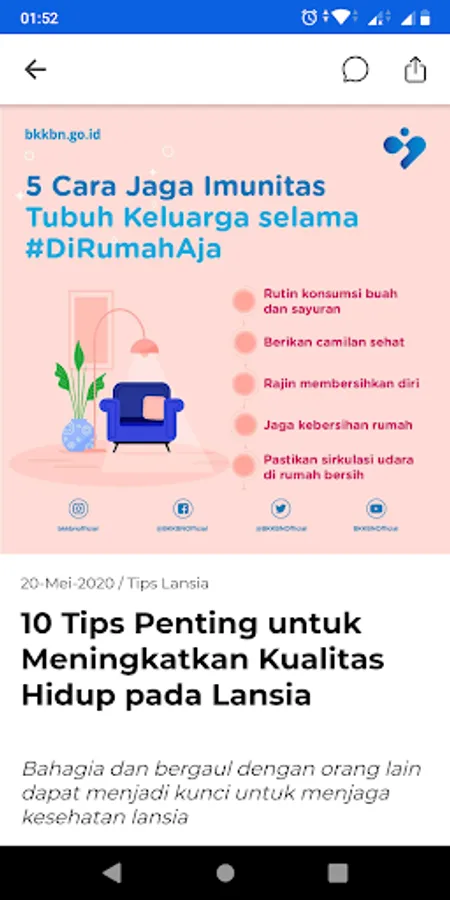 The GoLantang application was created to provide rubrics for the elderly and elderly families in achieving tough and quality elderly. Besides that it is also to socialize the Elderly Family Development program.