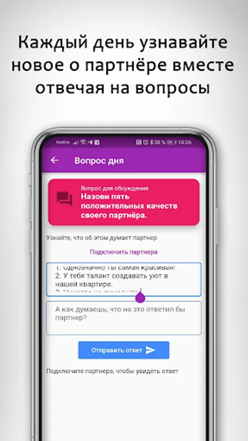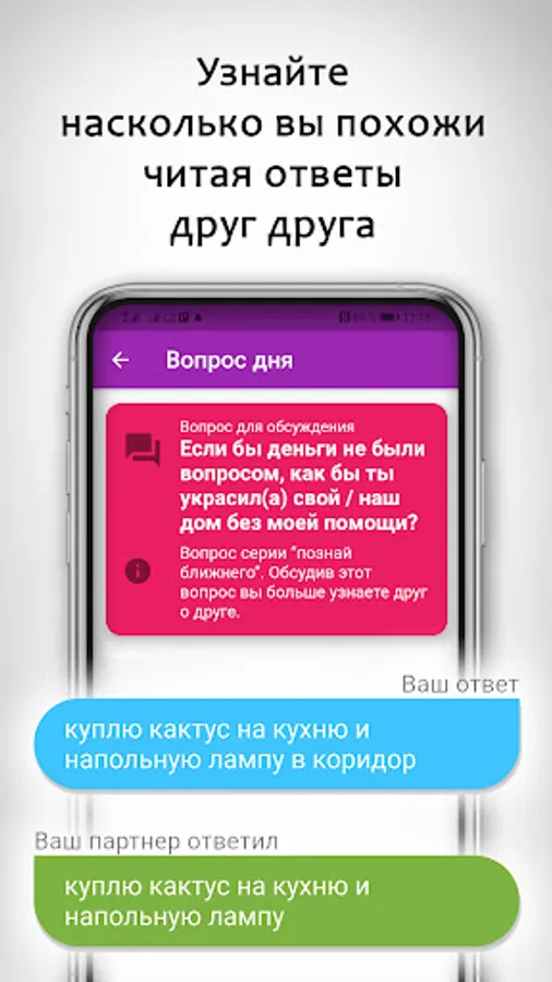 1. Every day we invite you and your soul mate to answer an interesting question. Questions are created by professionals based on research in the field of relationships.
