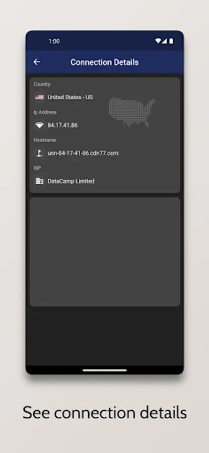 + For your convenience, we introduced two separate connection buttons. The first connects to a selected VPN in the list. The second connects directly to a United Arab Emirates VPN. It's that simple. In case you need to change IP address, just select a server in some other country and establish a connection. In case you need to get a United Arab Emirates IP address, just connect to a UAE VPN server in one touch.
