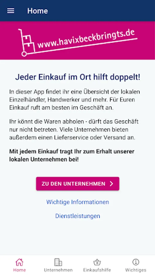 This app helps you to find goods and services in Havixbeck. You support the companies in Havixbeck and shop sustainably.