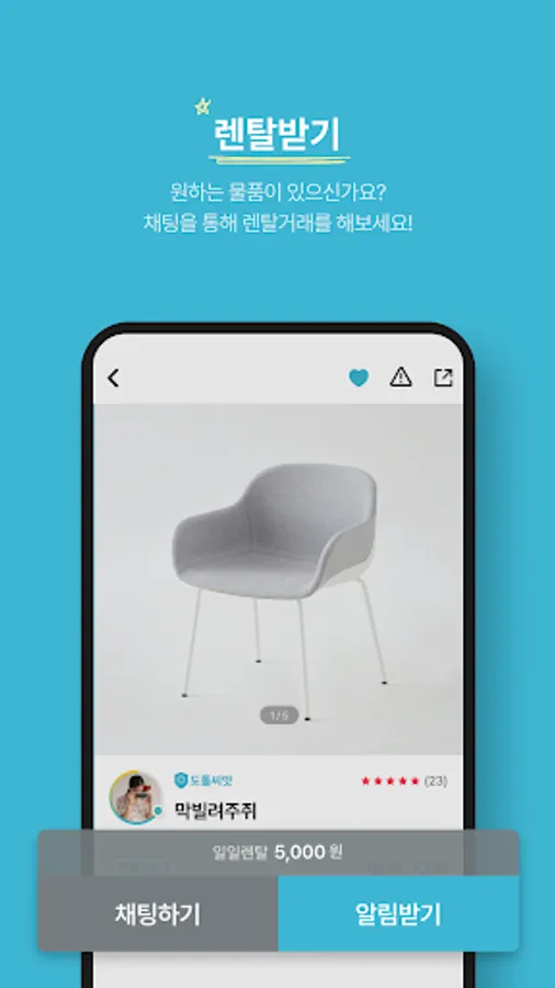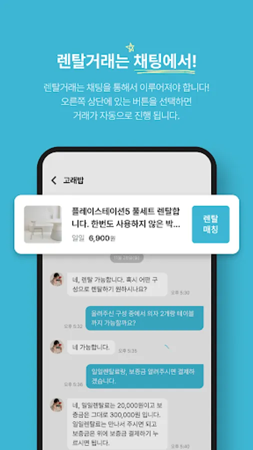 The moment you press the chat button, kindly provide buttons and guidance phrases suitable for the rental process, from rental matching to item pick-up, item return, and rental completion.