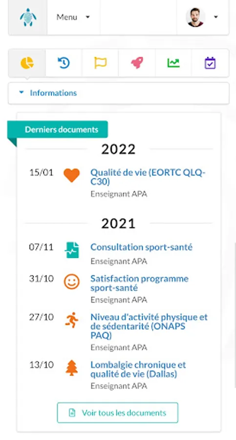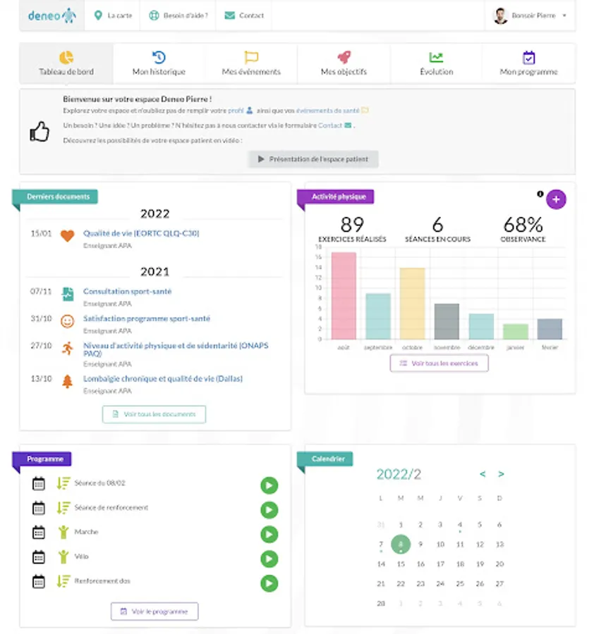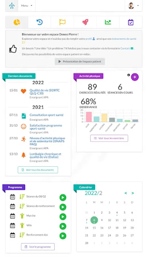 Patient: access your health information from your account and manage your information sharing with your trusted professionals. Indicate your events and your objectives, access your program and follow your progress in real time!