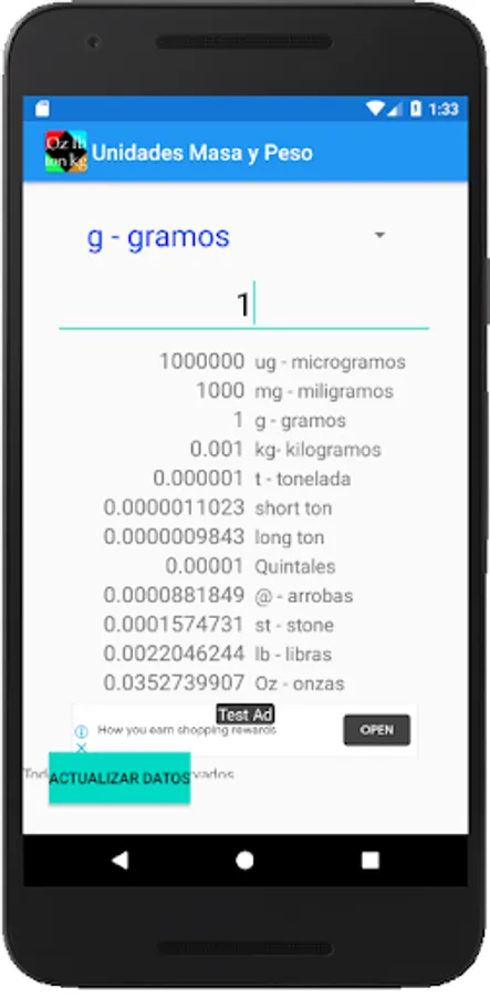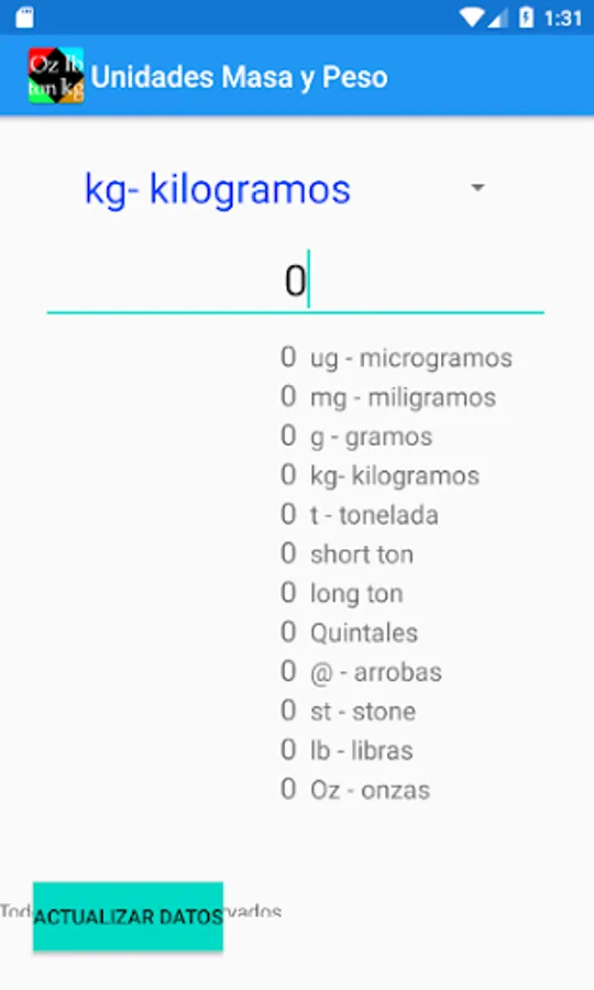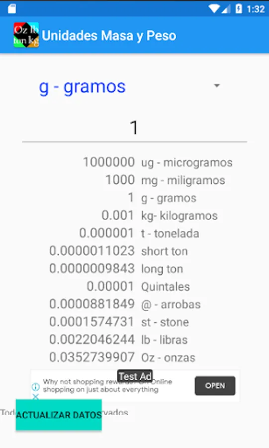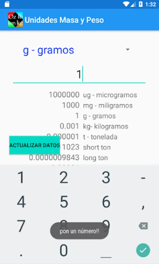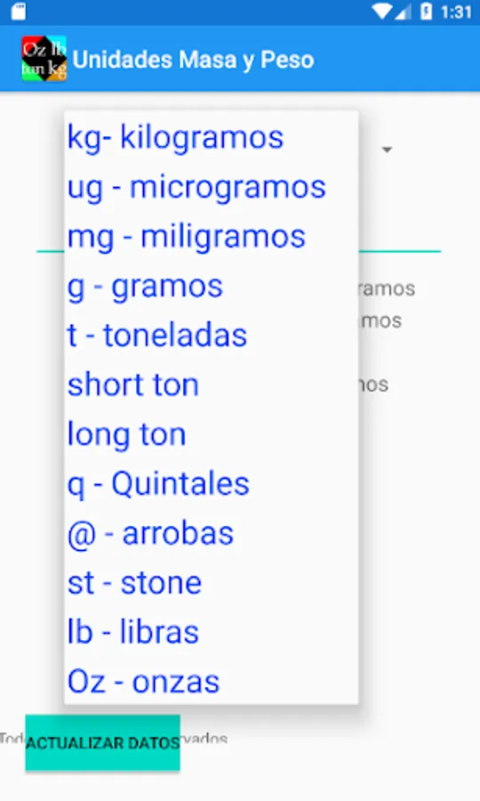 Converter application of mass and weight units.
