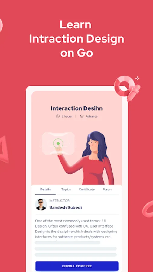 Interaction with the devices in this era is similar to making a human interaction. To enhance a user's experience, we have to ensure that the interaction they have with the product is seamless and fun at the same time. Interfaces have evolved from being just clickable to scrollable, touchable, and voice-controlled, as well. There is a need to add a human element to every interaction to make it feel more natural and straightforward. The journey of interaction design involves understanding human psychology to make interactions more intuitive. We have worked out and wrapped all the aspects in the course Interaction Design.