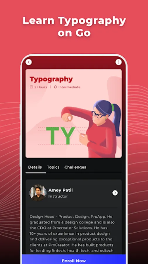 Typography is an aesthetic practice that deals with the art of textual characters. It leverages various concepts to help the designers take artistic yet meaningful typographic decisions for the designs, delighting users' understanding with legible choices in the process.